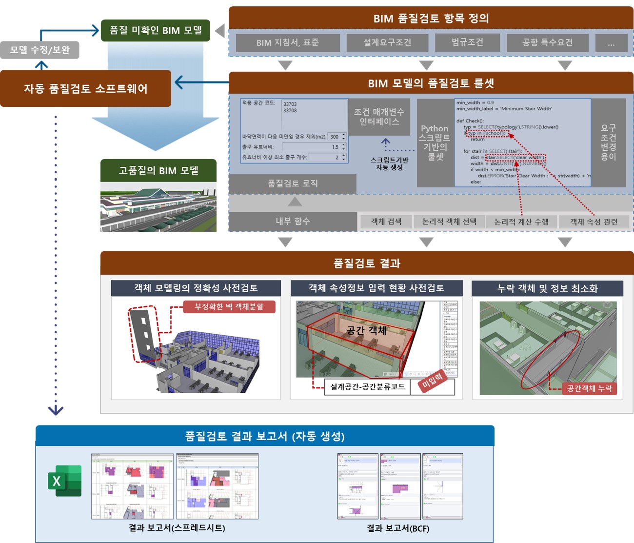 - BIM 모델의 자동 품질검토 (정보표준체계 요건, 법규, 건축주 요구사항 등)