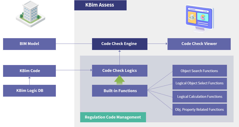 KBim Assess-Lite는 다양한 검토항목을 작성하고 활용하기 위해서 품질검토를 하는 논리구조(Code Check Logics)를 관리하는 모듈과